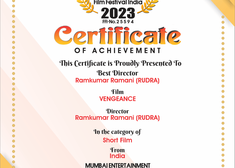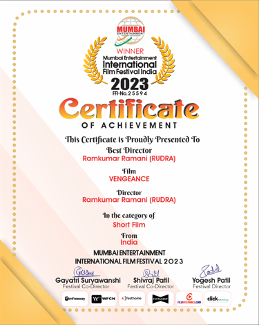 VENGEANCE is a short film that examines the psychological weight of retribution, portraying vengeance not as triumph but as a consequence shaped by inner conflict and moral tension. This short film won the International award from MIFF, India.